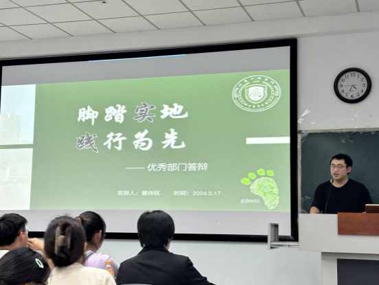 答辩活动在10-A203举行,吸引了各学生部门成员的广泛关注。各部门代表纷纷上台,就过去1年以来的工作成果、特色活动、创新举措、发展不足、以及未来规划等方面进行了详细的阐述和展示。