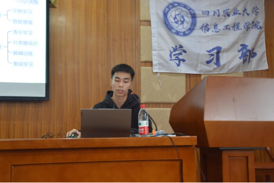在同学们雷鸣般的掌声中,吴天昊同学以“基于类别敏感的深度长尾学习”为题开始了精彩的汇报。他就像一位经验丰富的领航员,通过“深度学习简述”“长尾问题介绍”“常见解决方案”“其他视觉下方案”“项目应用实例”这五个清晰的维度,抽丝剥茧般地向同学们阐述了长尾问题的奥秘以及相应的解决方案。同学们全神贯注,如同置身于知识的宝库,在吴天昊同学的引领下,对“长尾问题”这一讲堂主题有了初步但深刻的认识。